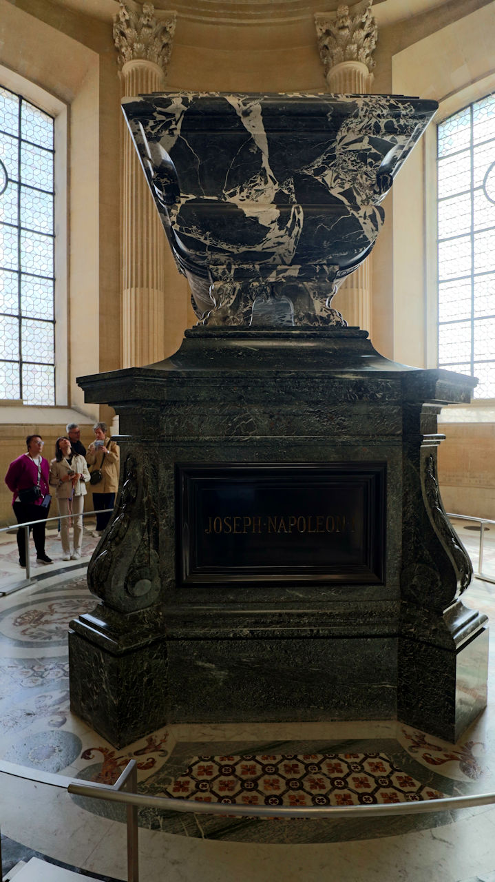 Im Inneren befindet sich das Grab von Napoleon Bonaparte. Seine sterblichen Überreste wurden im Jahr 1840 nach Paris überführt und in einem monumentalen Sarkophag unter der Kuppel beigesetzt. Die Anlage zählt zu den bekanntesten Grabstätten Europas.
