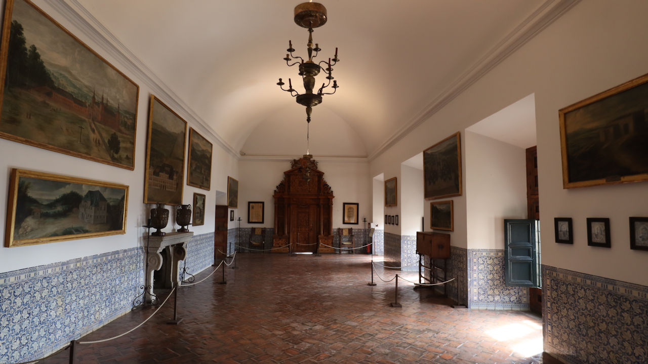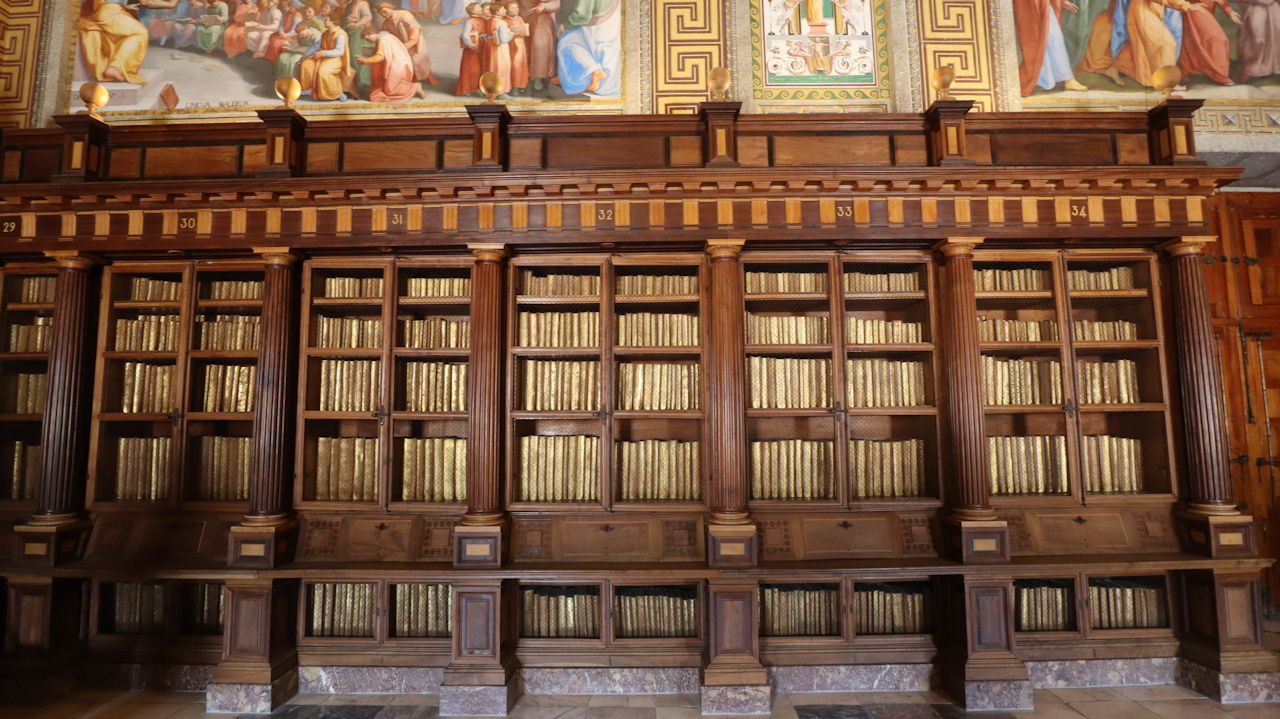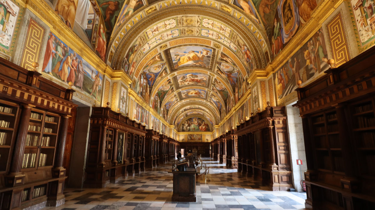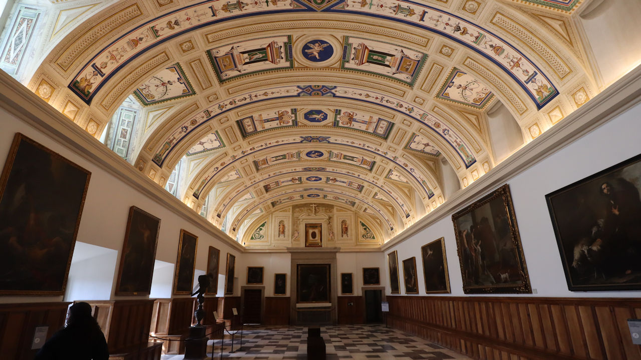Die Bibliothek gilt als einer der bedeutendsten Räume der Anlage. Sie enthält historische Manuskripte und Bücher und ist zugleich architektonisch durch ihre Deckenmalereien besonders eindrucksvoll.