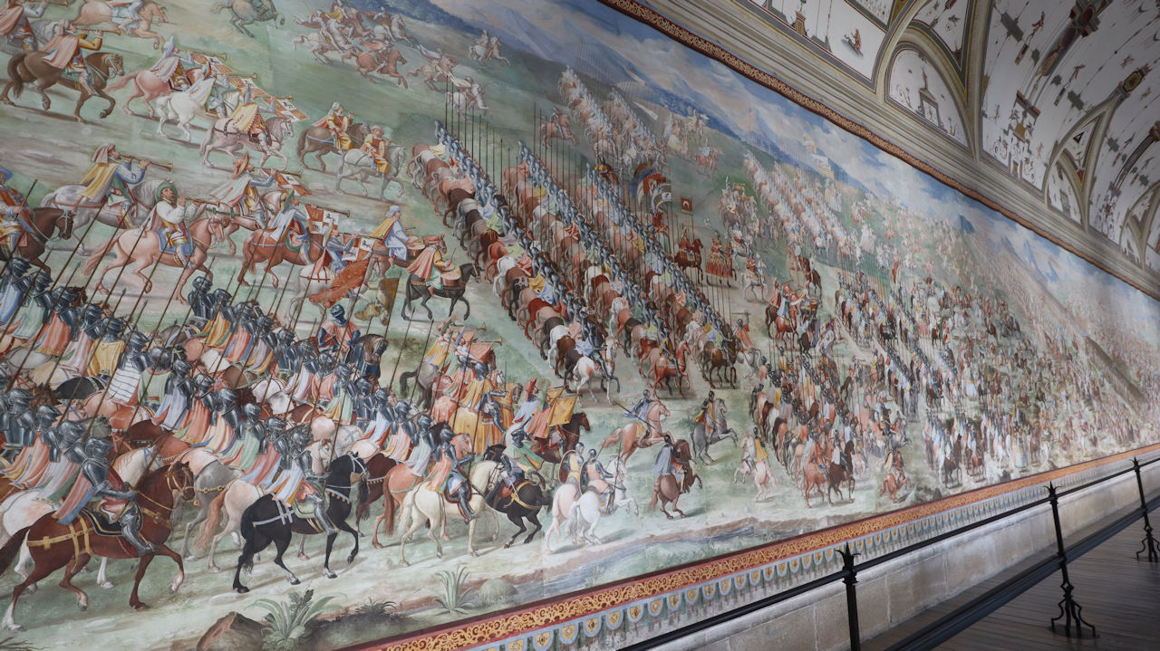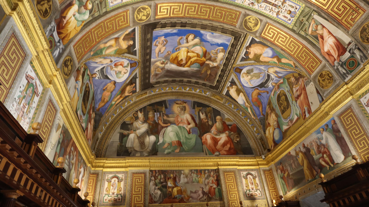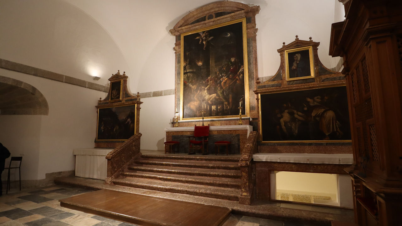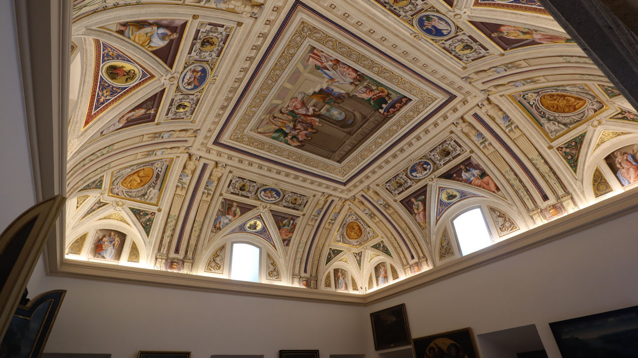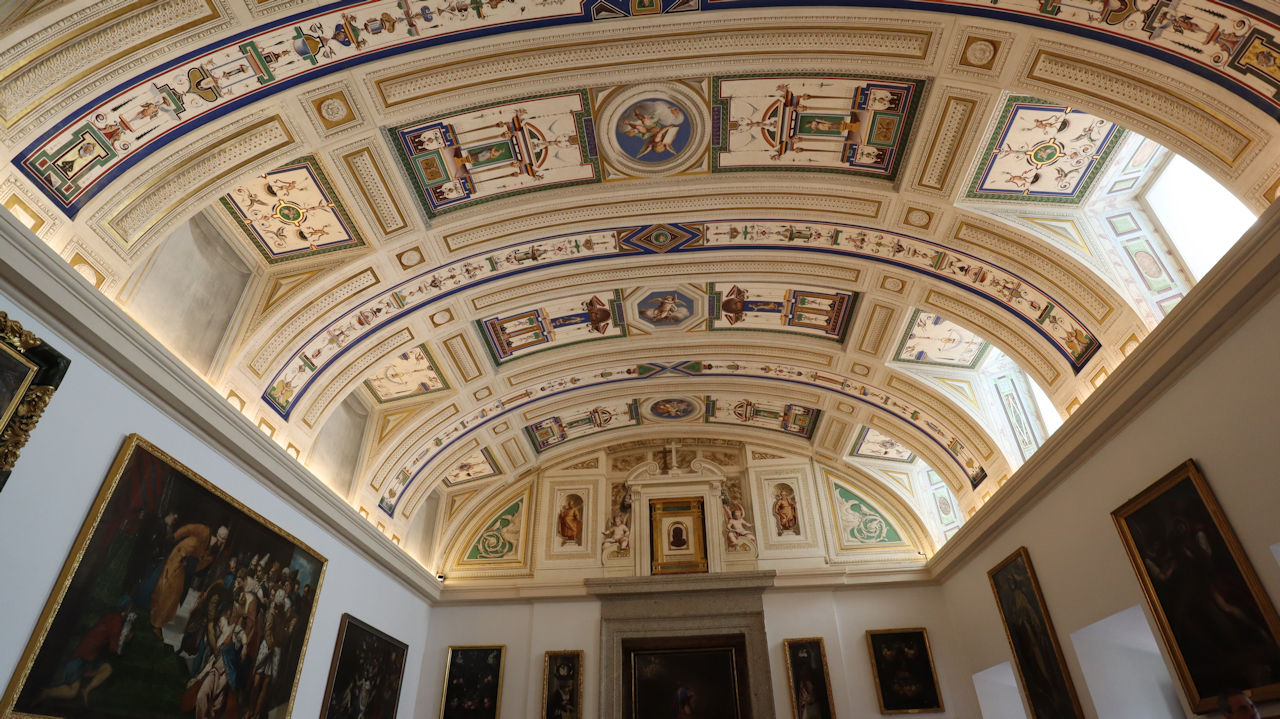 Die Bibliothek gilt als einer der bedeutendsten Räume der Anlage. Sie enthält historische Manuskripte und Bücher und ist zugleich architektonisch durch ihre Deckenmalereien besonders eindrucksvoll.