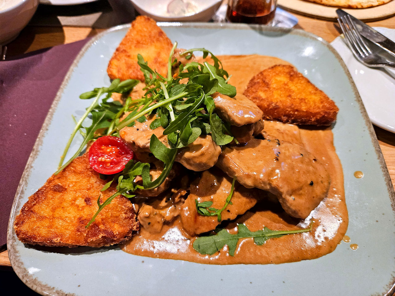 Nachdem wir das Haus Krücken betreten hatten, wurden wir freundlich an unseren Tisch gebracht. Das Restaurant war sehr gut besucht, weshalb wir froh waren, reserviert zu haben. Unsere Bestellung wurde schnell aufgenommen und wir mussten auch nicht lange auf unser Essen warten. Sowohl die Zwiebelsuppe als Vorspeise als auch das Hauptgericht, Schweinefilet in Senfsoße, und der Flammkuchen haben uns sehr überzeugt. Der Nachtisch, ein Nougat-Parfait, war dann der gelungene Abschluss. Ich finde es auch sehr gut, dass regionale Produkte verwendet werden und die Lieferanten auf der Karte erwähnt werden. Es war ein sehr schöner Abend bei gutem Essen. Eine klare Empfehlung!