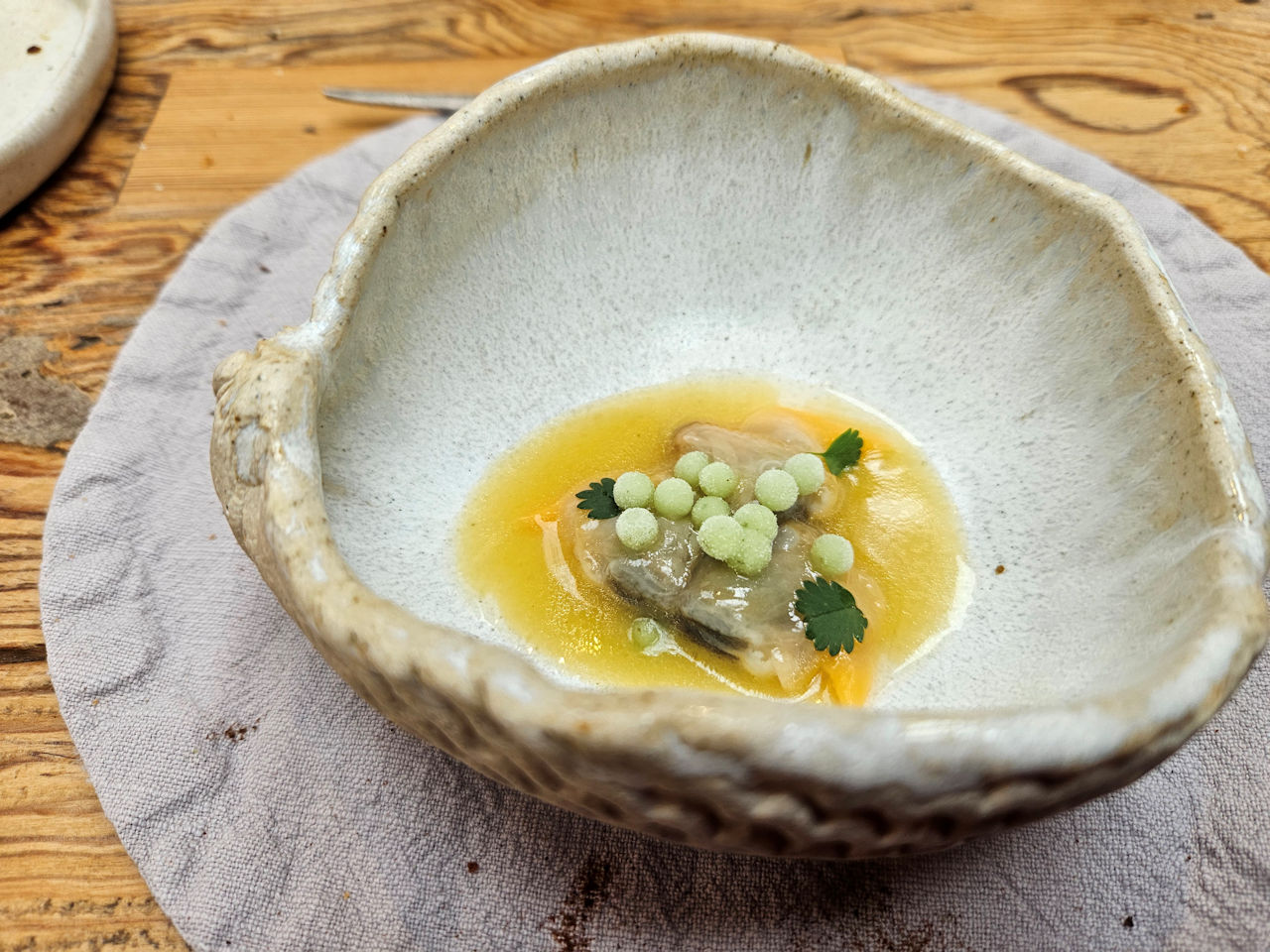 - Herzmuscheln in einer Marinade aus weißem Thymian und Zitronenverbene.