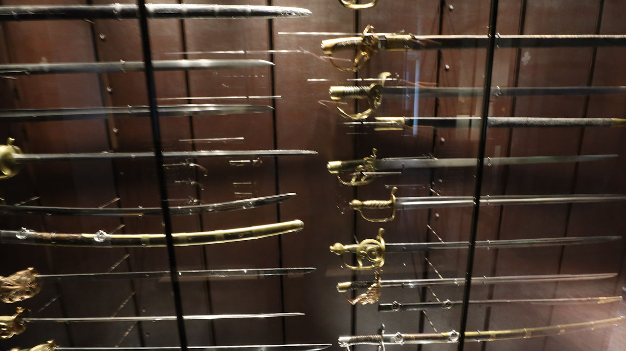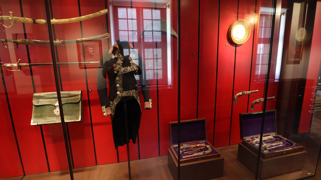 Die Exponate bestehen zum größten Teil aus Säbeln, Kanonen und Uniformen. Wenn man sich in die Zeit Napoleons begibt, kommen auch persönliche Gegenstände hinzu. Sehr interessant fand ich auch die Darstellung der Verläufe bekannter Schlachten wie Austerlitz oder Waterloo.