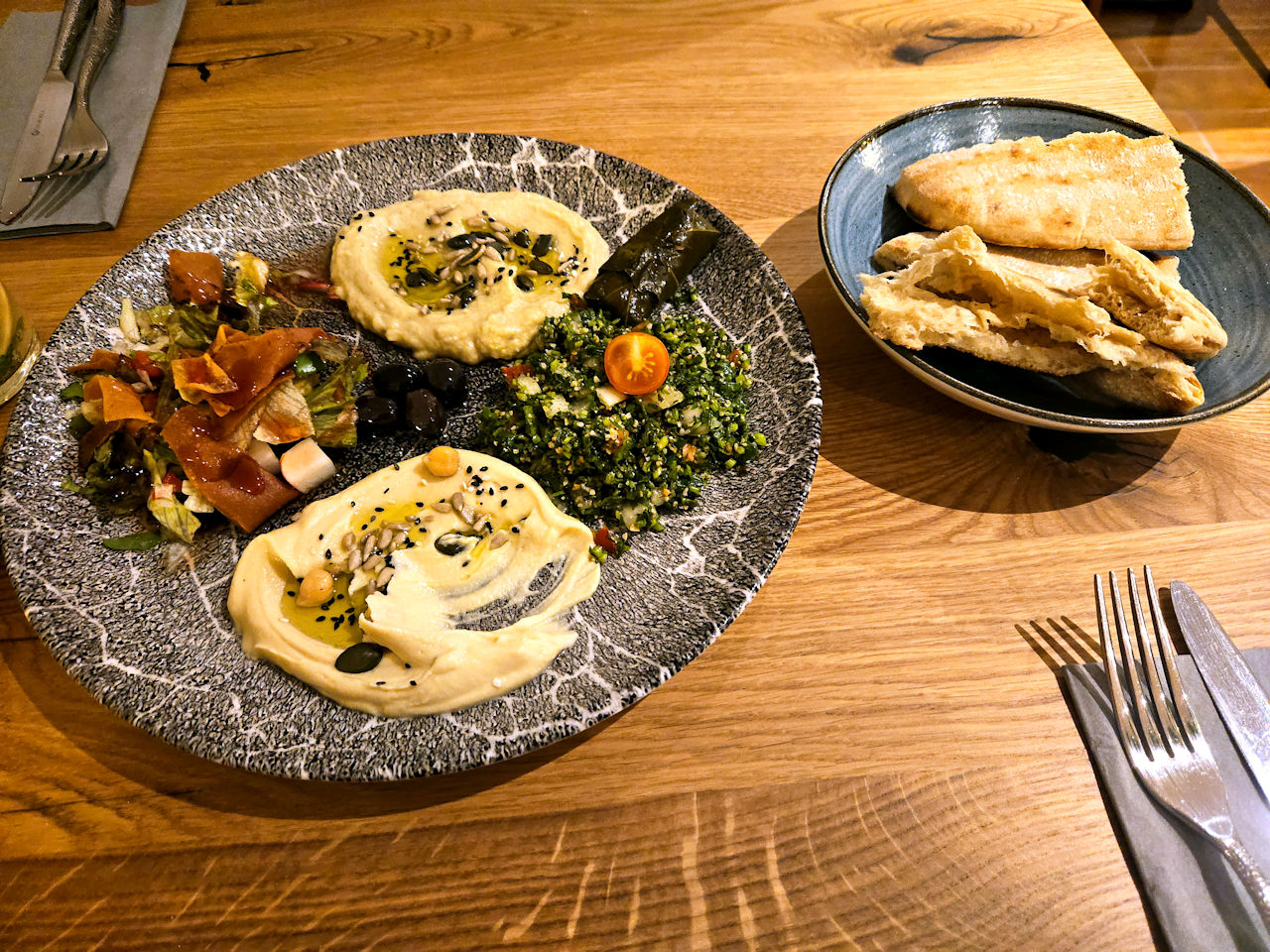 Küche insgesamt: mediterran-orientalisch inspiriert, modern interpretiert, mit einigen vegetarischen/veganen Optionen